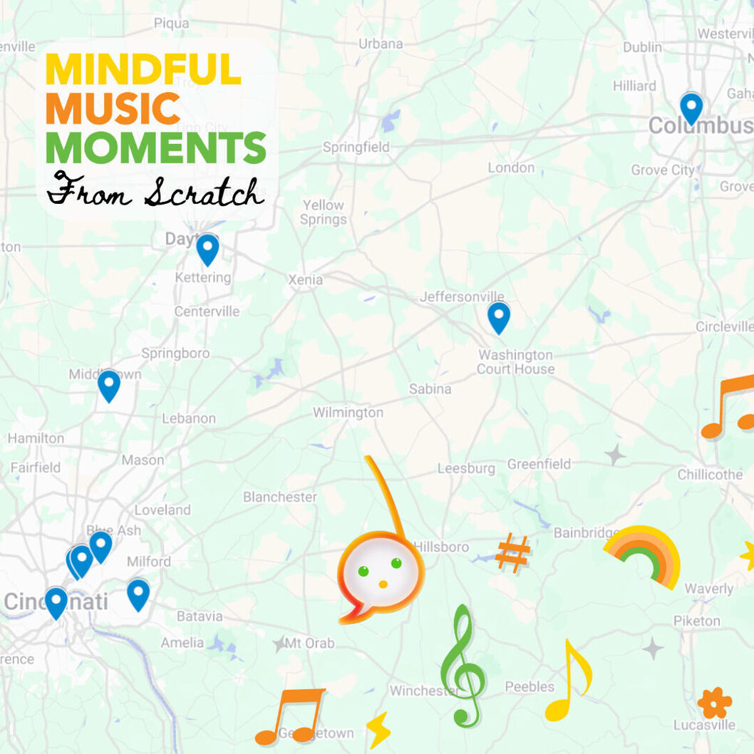 In Spring 2025, the From Scratch students sought inspiration from schools participating in Mindful Music Moments for a new 20-minute piece of music that they would compose collaboratively. Across 9 participating schools in Cincinnati, Columbus, Dayton and Northern Kentucky, 263 students submitted a "fill-in-the-blank" worksheet with words to be deciphered into 60-90 seconds of music in the final piece.